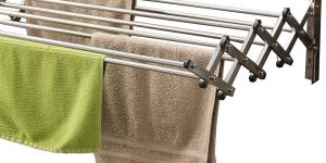 We offer a durable 24-inch foldable wall-mounted cloth drying stand made of high-quality stainless steel in a sleek silver color. This space-saving solution features 7/9 rods for ample drying space. Ideal for manufacturers and suppliers, this cloth drying stand is perfect for efficiently drying clothes while keeping your space organized. Easy to install and convenient to use, this wall-mounted drying stand is a must-have for any household looking for a reliable and practical laundry solution.