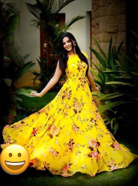 Ladies Yellow Cotton Flared Long Gown
