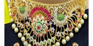 We are a leading Manufacturer, Exporter, and Supplier of exquisite Artificial Pearl Embellished Ethnic Necklace Set. Crafted with high-quality pearls and gold plated finish, this stunning necklace set is perfect for enhancing your ethnic wear collection. The elegant golden color adds a touch of sophistication to any outfit. Each set comes beautifully packaged in a jewelry box, making it an ideal gift for yourself or a loved one. Elevate your style with this timeless piece that exudes charm and grace.