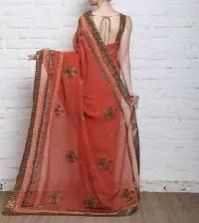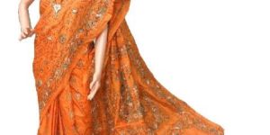 Orange Kantha Stitch Art Silk Saree