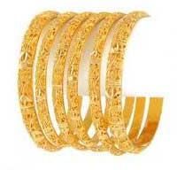We hold artistic prominence in designing an unmatched collection of designer Gold Bangles. Our craftsmen creatively design these Gold Bangles in unique designs and alluring patterns keeping in mind the choices and preferences of the wearer. The impeccable cut and perfect finish of these designer Gold Bangles are unparalleled. We can offer our range of designer Gold Bangles in varying traditional and contemporary patterns.