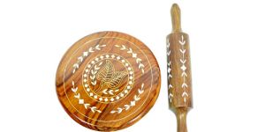 Handcrafted wooden Mortar with Laquer Inlay art and 1 pc of wooden pestle. Mortar with a diameter of 6 cm and depth 5 cm. The Product can also be apt for your traditional show piece collection The product is made from Indian rosewood and treated scientifically for longer life. The Inlay art form is 3500 years old which is a decorative technique of inserting pieces of contrasting acrylic,and shell into depressions in a base object to form patterns. Keep away from corosive liquids Size - 7.5cm x 7.5cm x 10cm