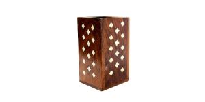 Pen Stand Handcrafted with rare Laquer Inlay The box is made from Indian Rosewood and treated scientifically for longer life. The Inlay art form is 3500 years old which is a decorative technique of inserting pieces of contrasting acrylic, bones, and shell into depressions in a base object to form patterns.