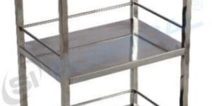 Rectangular trolley with 3 shelves and top complete stainless steel, Railings on three side of each shelf and top, Vertical Section 20 x 20mm S.S tube. 1.25 mm thick