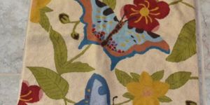 We are offering crewel rug butterfly cream chain stitched wool rug.inspiration: inspired by a trip to atlanta botanical garden depicts large butterflies and flowers surround smaller flower buds and butterflies in bright, vivid colors for a great contemporary look.