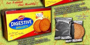 Packing : The Couple of Digestive biscuits packed in a Silver packs, Such 12 silver packs arranged in a colourful Dispenser box and weighs 360 g. The Master Carton contain 20 Display boxes and the loadability in 40 HC is 2600 carton boxes.