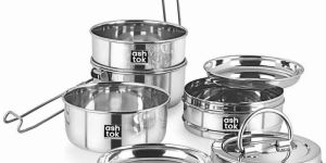 A Steel tiffin box, also known as a dabba or lunch box, is a traditional Indian container used for carrying and storing food, particularly for lunch. It is made of stainless steel, which is known for its durability, corrosion resistance, and easy maintenance. The tiffin box typically consists of multiple compartments, which allow for separating and carrying different types of food. It is commonly used by schoolchildren, office workers, and travelers to carry their lunch or snacks on the go. They come in different sizes and shapes and can have one or multiple compartments, also they are also stackable, which makes them easy to store. They are easy to clean and maintain and are often preferred over plastic containers as they are more eco-friendly.