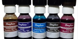 Daytone Fountain Pen Ink is traditional liquid Ink for use through Fountain Pens & calligraphy Pens. It is available in Eight brilliant shades on regular basis Royal Blue, Blue Black, Turquoise Blue, Deep Black, Violet, Red, Green & Crimson. Besides these Eight regular Shades Fountain Pen Ink is also available in 7 More Colors: Dark Brown, Havana Brown, Olive Brown, Mauve, Yellow Ochre, Rose Red, Dark Grey.Daytone Fountain Pen Inks are available in 500 ml. 60 ml. pack.These Inks are free flowing dye based Inks and find a special place among the Fountain Pen lovers.Daytone is our Registered Trademark