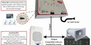 Connect more number of bells on single control unit: to bring all areas of school in audible range. With one electronic bell 70 to 100 meter area is covered. Up to 10 electronic gong bells can be connected directly on control unit. All of them will ring simultaneously.