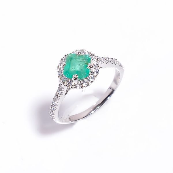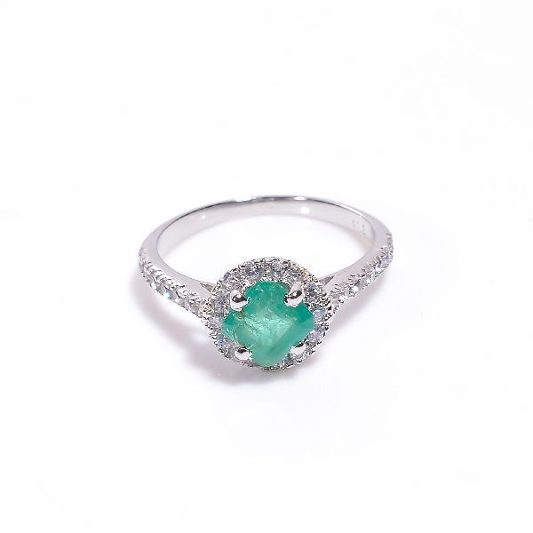 Designer Sterling Silver Emerald Gemstone Ring