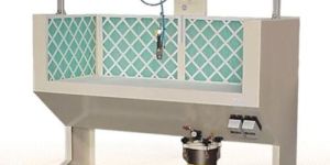 The latex becomes nebulized after passing the special nozzle and paints on material surface homogeneoursly.Latex stored in pressurized barrel.Rinse the nozzel with water from the pressure barrel after latex spraying in case of jam and in convenient of next use.Flying bebulized lates molecules are absorbed into the plate through draught fan and solidify, which avoids environment pollution and improves working conditions.Installed with switch for water and larex spraying, which is wasy to operate
