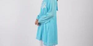 Embroidered Sky Blue Peplum Top Palazzo with Scrunchies