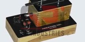 The coils are housed in a teakwood base, voltage tested condensers are fitted inside the wooden polished base. Handles to get the spark are on it. The make and break points are of silver. One point is adjustable to get any cycle. On off reversing switch commutator, working on 6-12V D.C.