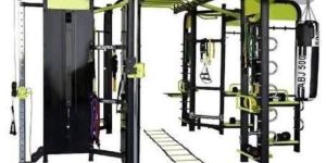 Jungle Gym4 Station Multi Gym Cable Crossover – two 80kg. weight stacks, Lat Pulldowns – 100kg. weight stacks, Seated Rows – 100kg. weight stacks.