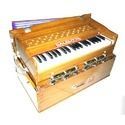 The Harmonium is an instrument that is indispensable in India and that is used in the religious field, in classical music, in folklore and for playing within the family. It owes its popularity mainly to its easy handling. The Harmonium can be compared in its functioning to the accordeon. Air is pumped into an enclosed space by means of bellows. With a keyboard it is possible to open specially defined holes, through which the pumped air is then pressed. The reeds attached to the openings (double, triple or quadruple reeds) are set vibrating and so produce the desired note.