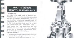 Bolted bonnet, 13% Cr. S.S. (AISI – 410) Trim, Solid Wedge, Flanges as per BS – 15060/ANSI-B 16.5