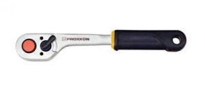Baton ratchet 1/4''. Our sturdy ratchet! Fine tooth drive: Many teeth of the 45 teeth engage simultaneously for transferring high torques. Reversing lever for ratcheting direction. Quick-release button for ejecting sockets. Head and shaft forged from one CrV steel billet. Double nickel plated with matt chrome plated finish. Grip of oil and acid-resistant TPR (thermoplastic rubber) with practical hole for hanging up.