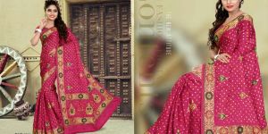 Jamnagar famous Pink Gaji silk Bandhej saree with work available in 10 color bulk quantity available in best price for more details please contact @ +91 9426916567