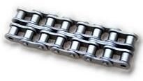 Duplex Chains is variant of roller chain to carry more load on transmission. The size of chain defined by pitch of chain (distance between center of consecutive rollers in chain), Diameter of Roller which is designed on basis of Diameter of Sprocket and no. of teethes on sprocket, thickness of plates calculated by load to be taken etc. Duplex Chain are used in combination with duplex sprockets.