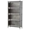 We offer a new Iron Book Shelf in a sleek black color, featuring a modern open design. Crafted from sturdy iron, this rectangular book shelf is perfect for any contemporary space. It comes packaged in a box and includes care instructions to simply wipe with a damp cloth. The shelf is designed for easy assembly and maintenance. Ideal for manufacturers, exporters, and suppliers looking to provide high-quality, stylish furniture to their customers.