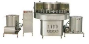 each unit is made out of SS304, consists of 12 SS rinsers. Valve is provided for controlling flow of water. Leak proof construction. Whole unit is constructed over a drainage tray to avoid spillage of water out of tank. Rubber corks are provided over rinsing tray to avoid chipping of bottles.