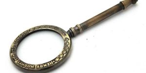 A solid brass magnifying glass measuring 10 inches is a classic and elegant tool, perfect for various purposes. Here's a description: