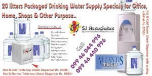 We SJ Associates, Biggest suppliers in Kochi for Packed drinking/ mineral waters in 20 ltrs can, Provides quick n’ speedy delivery for you on attractive price at your door within the limits of Ernakulam, Tripunithura, Karingachira, Irimpanam, Vyttial, Maradu, Kundannoor, Palarivattom, Kakkanad, Infopark, Thiruvamkulam, Kadavanthra, Kalamassery, Kaloor, Karimughal ...Feel free to contact 09946044996