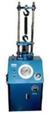 This consists of a "C" type rigid frame with hydraulic cylinder at its top and adjustable main testing tale is connected to an upper cross-head through two screwed columns can be rapidly adjusted to test height by means of motor. A pair of trolleys is provided on the table to take the horizontal deflection of the spring under loading.