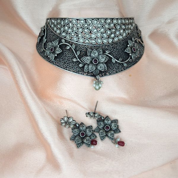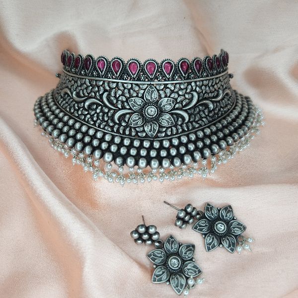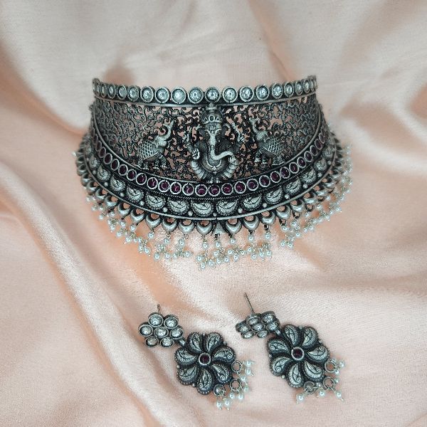 Silver Choker Necklace Set