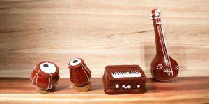 Handmade Miniature Terracotta Musical Instruments Home Decor manufacturer exporter wholeseler Handcrafted Terracotta Miniature Musical Instrument Set for Home Decoration, Children Toy, Housewarming Gift, Clay Musical Instrument for Table Decoration, Return Gift, Corporate Gifts