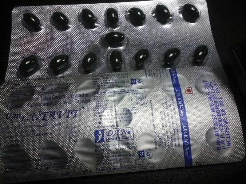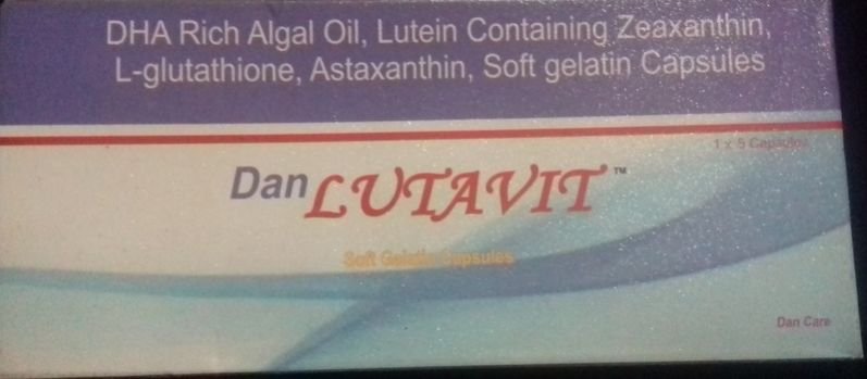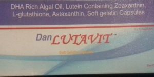 DAN LUTAVIT Capsule Lutein and Zeaxanthin belong to the xanthophyll family of carotenoids and are the two major components of the macular pigment of retina. Lutein and Zeaxanthin are the only carotenoids found in both the macula and lens of human eye, and have dual functions in both tissues to act as powerful antioxidants and to filter high-energy blue light. Docosahexaenoic acid (DHA) and Eicosapentaenoic acids (EPA) are two major components of Omega3Fatty Acids and are concentrated in retina and retinal vascular endothelium.Glutathione is a tripeptide, which is a molecule consisting of three amino acids linked together by chemical bonds. It is an important nutrient in many organisms, including plants, animals and some bacteria. Glutathione has strong antioxidant properties, meaning that it protects cells from the damage that occurs when chemicals react with oxygen. These chemicals primarily include free radicals, but other reactive oxygen species include heavy metals, lipid peroxides and peroxides.The liver biosynthesizes glutathione from the amino acids glycine, L-cysteine and L-glutamic, which are readily available from a variety of dietary sources. Glutatione is therefore not an essential nutrient, although it is found in many fruits, meats and vegetables. Glutathione’s value as a nutritional supplement derives from its role in the synthesis of proteins in the body. These proteins perform many functions relating to the synthesis and repair of tissue. It is particularly important for maintaining the immune system. DAN LUTAVIT Capsule are demonstrates the essential role of in preventing risk of Age-related Macular Degeneration and many other eye conditions like Cataract, Retinitis Pigmentosa, Dry Eye and Glaucoma.Docosahexaenoic acid (DHA) and Eicosapentaenoic acids (EPA) are two major components of Omega3Fatty Acids and are concentrated in retina and retinal vascular endothelium.DAN LUTAVIT Capsule are demonstrates the essential role of in preventing risk of Age-related Macular Degeneration and many other eye conditions like Cataract, Retinitis Pigmentosa, Dry Eye and Glaucoma.Uses :Astaxanthin is given as a supplement to reduce the risk of an eye disorder called age-related macular degeneration (AMD). It improves vision in people with macular disease. Docosahexaenoic acid is used to treat high cholesterol levels. Thus, it is used to treat the related heart conditions. Lutein is used during the treatment of lutein deficiency. As a medicine, it is used to treat certain degenerative disorders of the eye, such as age-related macular degeneration (AMD). It also is known to improve vision in patients with cataract.How does the drug work?Astaxanthin is a carotenoid with high anti-oxidant activity. It is drawn into the lens of the eyes where it neutralizes the free radicals, thus, protecting the cells from damage. Docosahexaenoic acid works by reducing the production of lipids in the liver. L-glutamic acid is produced by the body. It is considered as nature’s brain food by improving mental capacities, it improves immune system and hair follicles. It bypasses fat deposition caused by insulin Lutein is a carotenoid found in the human eye which acts as a filter protecting the eye from damage due to sunlight.Contra-IndicationsDo not use if you suffer from Allergic reactions, Aspirin-sensitivity, Hypertension, mental disordersUsageCataract, eye problems, vision problems, preventing risk of Age-related Macular Degeneration and many other eye conditions like Cataract, Retinitis Pigmentosa, Dry Eye and Glaucoma