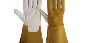 NNatural cow grain leather palm and thumb. Back & gauntlet style 15cm cuff with dyed split leather with edge hemming or binding. Extra pulse protection. Other cuff lengths available (8cms – 25cms). Full / Half cotton inner lining (Optional).