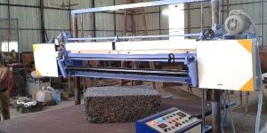 This machine is designed with 2 knife pulleys of 500 mm on which the cutting knife of 40 mm width is running The table is made up of strong steel frame with wooden table top covered with abrasive sheet to hold the blocks firmly The cutting height can be adjusted from 0 to 5 degree by swiveling the cutting frame for achieving the cutting of 2.50 mm to 150 mm thick sheets The knife can be continuously sharpened with the grinding attachment All electrical controls are incorporated into the panel board which is supplied ready for operation