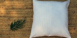 Silhouette: Fawn Tusser Silk Chikankari Cushion cover formed in square shaped which finished with embellishment and Chikan Embroidery.