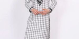 "Sufiza" presents a sophisticated White Khadi Men's Shirt adorned with Black Check Print and intricate Chikankari Hand Embroidery, blending classic design with traditional craftsmanship for a timeless appeal