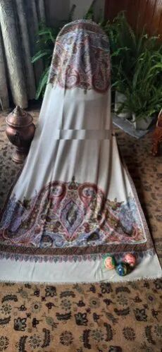 Hand Embroidered White Pashmina Lucknowi Chikankari Shawl