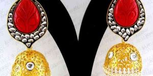 An Elegant Jhumka Stud with a Combo of Golden, Black and Red
