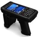 AT880 is an all-in-one unit, including ruggedized Windows handheld device with WiFi and 3G network connectivity, RFID and barcode readers, and gun grip with additional battery.