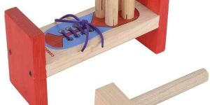 Playful shoe-makers can hammer & lace with this wooden 'Cobbler's Bench'.