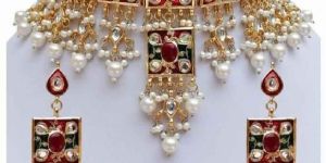 Meena Kundan Beautiful Pearls Design Gold Plated Wedding Style Handmade Necklace Jewelry Set