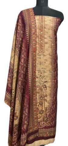 Design: Elegant maroon woolen suit with matching shawl for a cohesive, refined look