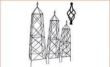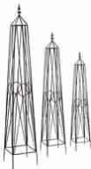 Description: Combine style and function with this tall and sturdy obelisk. The large scrolls from within the obelisk offer support to your climbing plants, while adding visual interest and structural reinforcement.
