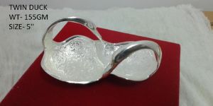 BRASS E.P.N.S ( TWIN DUCK) ITEM NO. :- S-1011 FINISH :- SILVER SIZE :- 5 inch WEIGHT :- 160 gm MATERIAL :- BRASS USE :- HOME DECOR & GIFTING PURPOSE.