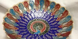 BRASS E.P.N.S ( PEACOCK ROUND TRAY - KATHAI ) ITEM NO. :- S-1032 FINISH :- KATHAI WEIGHT :- TRAY - 300gm MATERIAL :- BRASS USE :- HOME DECOR & GIFTING PURPOSE.