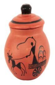 Clay Curd Pot with Cap 350 ML Warli Cart Design