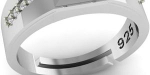 This is the Men's Ring, crafted from 925 sterling silver and featuring a prominent center stone, likely a Swarovski crystal, in a square bezel setting. Smaller stones are channel-set along the sides of the band, adding an extra touch of sparkle. The ring has a modern and masculine design with clean lines and a polished finish.