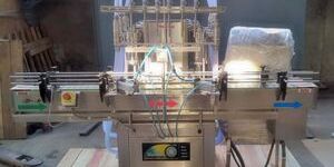 containers moving on s.s. Slat conveyor, feed below the filling nozzles through a twin pusher system. The twin pusher system and reciprocating nozzles are precisely matched for centering of container below nozzles, to avoid spillage of liquid on container, to minimize foaming adjustable nozzles will reciprocate according to filling doze, nozzle will go upwards slowly from bottom level of bottle towards neck during filling. The dosing block with a hexagonal bolt fitted below syringes. This means different fill size can be easily set.