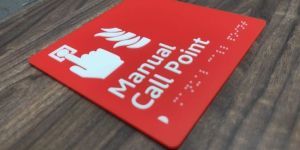 Braille text includes people with visual impairments to read the sign.