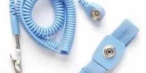 This product has an inner layer made of soft conductive rubber which ensures 100% efficient conductive contact with the skin of the user. The hook and the loop fasteners facilitate adjustment to the size of the wrist while maintaining comfort for working long hours. This wrist strap is very rugged in construction. A coiled ground is provided with each wrist strap. The cord carries 1 megaohm resistor in series, moulded into the snap female connectors. Various end connectors are offered to suit requirements