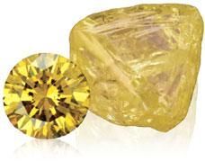 The vast majority of all diamonds contain some nitrogen. In most yellow diamonds the nitrogen atoms have grouped themselves in very specific ways. This happens during and right after the diamond is formed. These nitrogen arrangements absorb light in the blue region of the spectrum producing a yellow color. Yellow diamonds can contain an orange, green or brown modifying color.